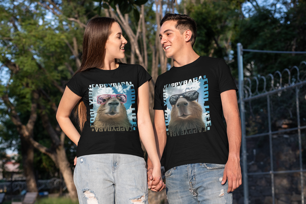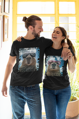 Cool Vibe Capybara – Matching Tees for Couples with Big Vibes