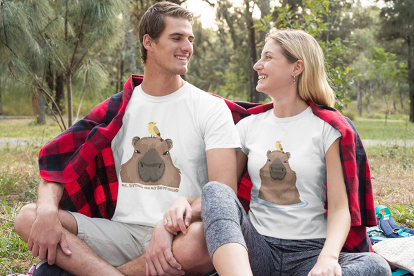 Comfy, calm, and slightly chaotic π¦«π This funny capybara matching set perfectly captures modern relationship dynamics: one chill partner, one bird sitting on top claiming dominance. With the hilarious caption βme, sitting on my boyfriend,β itβs the ultimate vibe for couples who joke, tease, and totally adore each other. A playful, meme-worthy outfit for everyday wear or gifting to your emotional support capybara π¬β¨