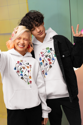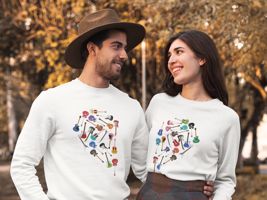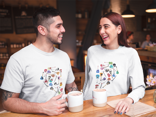 Feel the rhythm of love 🎶❤️ This colorful “Guitar Heartbeat” design forms a heart out of guitars, showing that your bond plays in perfect harmony. A stylish and creative matching set for couples who vibe to music and to each other. Ideal for everyday wear, gifting, or date nights where your outfits strike the right chord. A perfect look for music lovers who beat as one 💥🎸