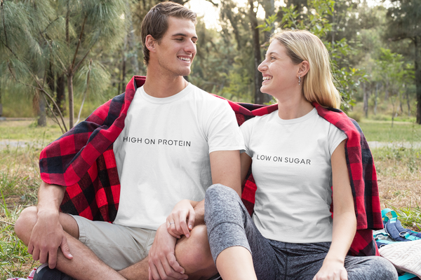 Fuel your love with flavor and fun π³β€οΈ! This βHigh on Protein / Low on Sugarβ duo is made for fitness couples, clean eaters, and health-conscious pairs with a sense of humor. Whether you meal prep together or flex macros on date night, this matching set adds a tasty twist to your couplewear. Great as a gift for foodie lovers, gym partners, or anyone whoβs into playful, health-inspired matching outfits π₯¦πͺ