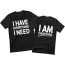 A power couple's dream design 💥 One says "I have everything I need," the other replies "I am everything." This matching look is cheeky, confident, and made for those who love loud and laugh louder. Whether it’s for an anniversary, casual date, or just everyday fun, this couple outfit says it all ❤️ Perfect as a bold matching set for couples, his and hers look, or a fun gift for boyfriend & girlfriend who love to show off their vibe 😎💑
