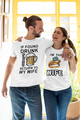 If Found Drunk Please Return to My Wife & Iβm the Wife β Funny Couple Drinking Shirts β Matching Party Tees