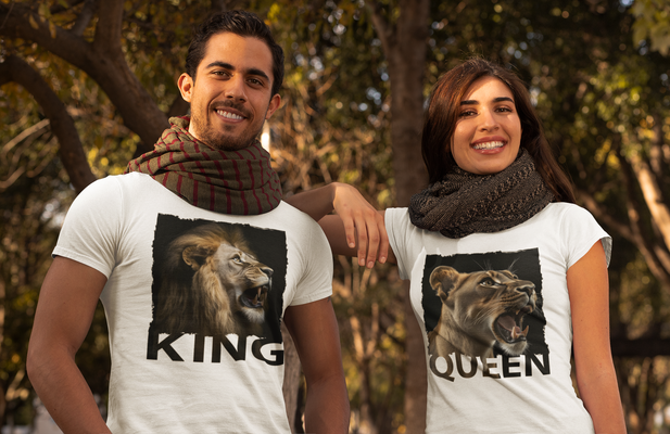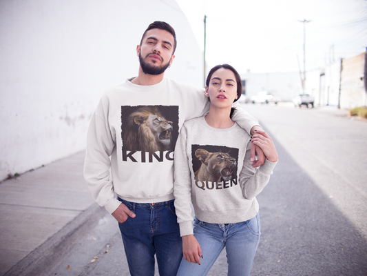 When love roars, the world listens π¦π These bold matching outfits feature a roaring lion and lioness, crowned in attitude and power. βKINGβ and βQUEENβ arenβt just titles β theyβre your energy. Perfect for confident couples who lead together and never play small. A high-impact couplewear look for statement photos, gifting, or just walking like royalty. Be fierce. Be legendary. Be roaring in love π€π₯
