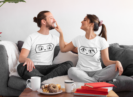 Capture that “I know what you did” vibe with these matching suspicious cat face t-shirts. Perfect for couples who speak fluent sarcasm and love side-eyeing the world together. Minimalistic, quirky, and purr-fectly dramatic – because trust is cute when it squints.