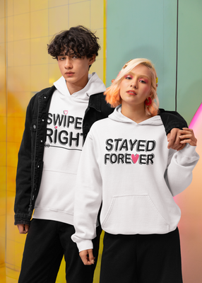 From dating app to daily cuddles 📲❤️ — this “Swiped Right / Stayed Forever” couple set celebrates your love story from first match to forever vibes. With cute typography and heart accents, it’s the perfect matching outfit for couples who met online, found the real thing, and love to show it. Ideal as an anniversary gift, Valentine’s Day look, or fun duo outfit for boyfriend & girlfriend 💑✨