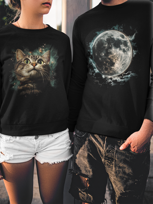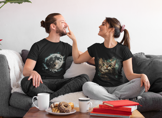 One's the moon π. Oneβs the meow π±. Together, this matching set creates a dreamy love story written in the stars. Featuring a full moon and a stargazing cat, it's perfect for couples who believe in cosmic connection, romance, and a little feline magic. Ideal for anniversaries, stargazing dates, or just curling up together with starry eyes. A couplewear combo that says: youβre my universe π«β€οΈ