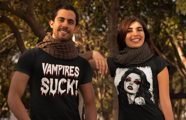 Vampires Suck! β Bold & Spooky Matching Outfit Set for Halloween-Loving Couples