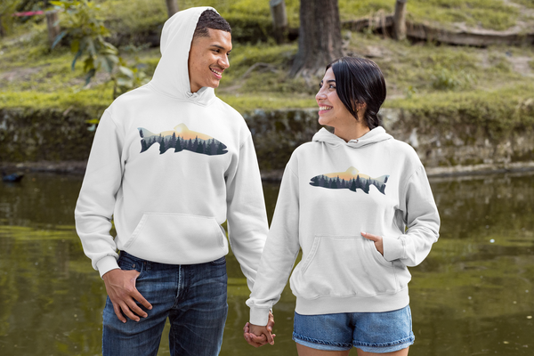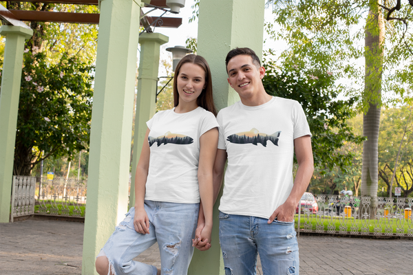 Where the wild things love πŸŽ£πŸŒ„ β€œWild Catch” is a calm yet stunning couple outfit for those who connect over sunsets, forest trails, and lakeside stillness. With a landscape wrapped inside a fish silhouette, this nature-inspired design is perfect for outdoorsy couples who find beauty in simplicity. Great for travel, camping, or just vibing in sync with the wild πŸ•οΈπŸŒ²