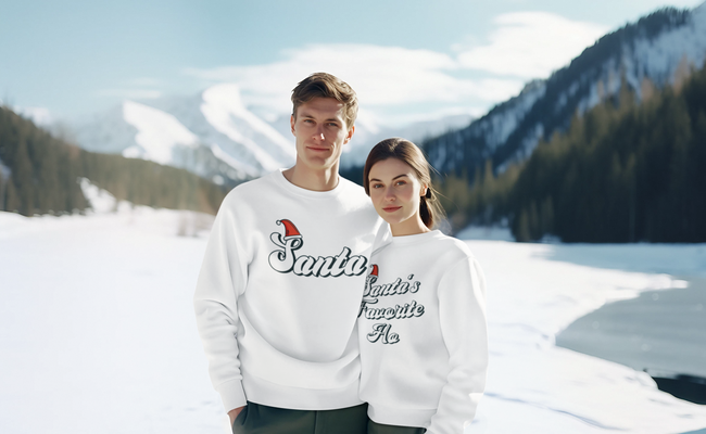 Turn up the holiday humor with these cheeky matching couple shirts: “Santa” & “Santa’s Favorite Ho”! Perfect for parties, adult Christmas gatherings, or hilarious couple photo ops. A bold and playful gift idea for couples who love to laugh and keep things spicy under the mistletoe! 🎅🔥🎄