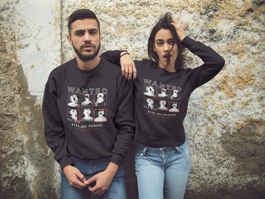 Warning: cuteness overload ahead 🖤 Our Custom Wanted Matching Outfits transform your faces into a hilarious $100,000 “WANTED” poster — complete with your own playful “crimes” like Stealing My Fries or Leaving Socks Everywhere. It’s the ultimate mix of humor and love, perfect for couples who enjoy teasing each other and showing off their fun side.