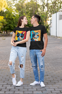 When art meets attitude 🎨😼 β€œGeomeowtric Cool” is a bold matching outfit for couples who love cats, color, and creativity. With edgy geometric design and vibrant contrast, this set transforms your love into a wearable modern art moment. Ideal for stylish cat parents, creative duos, and couples who like to turn heads wherever they go. Pure pop-meow perfection! πŸ§‘πŸ’™πŸ•ΆοΈ