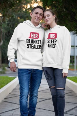 Celebrate the chaos of couple life with this hilarious matching set for couples π΄β€οΈ. Featuring βHer Blanket Stealerβ & βHis Sleep Thief,β it's the perfect cozy outfit for lazy Sundays, movie marathons, or just snuggling with sarcasm. A fun and relatable gift for boyfriend & girlfriend or husband & wife who know love means losing sleep β and blankets. For couples who laugh through the night πποΈ.