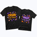 Trick in the Streets & Treat in the Sheets β Funny & Flirty Matching Halloween Couple Shirts for Spooky Season